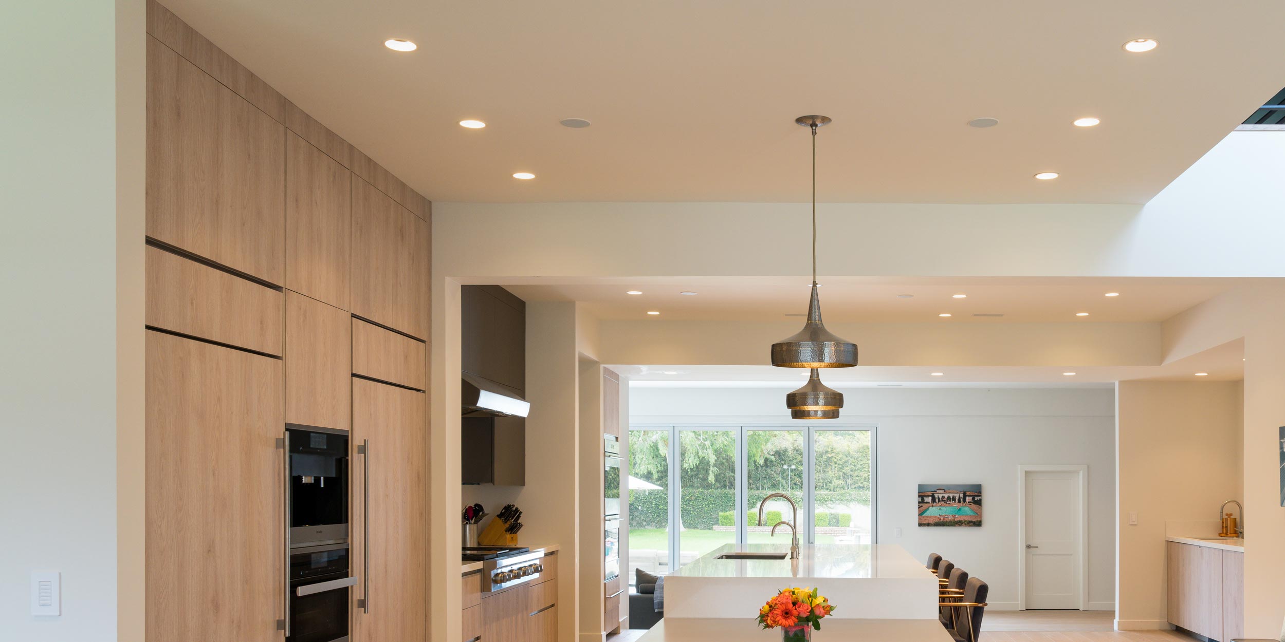 Entertain in style with a “Party” lighting scene that activates lights in the kitchen and living room to a white-blue hue that keeps guests energized throughout the night. Add landscape lighting to the scene to encourage guests to gravitate to your beautiful outdoor spaces.